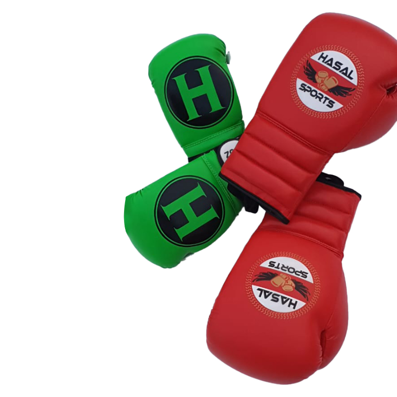GENIUNE LEATHER ESSENTIAL GREEN AND RED BOXING GLOVES